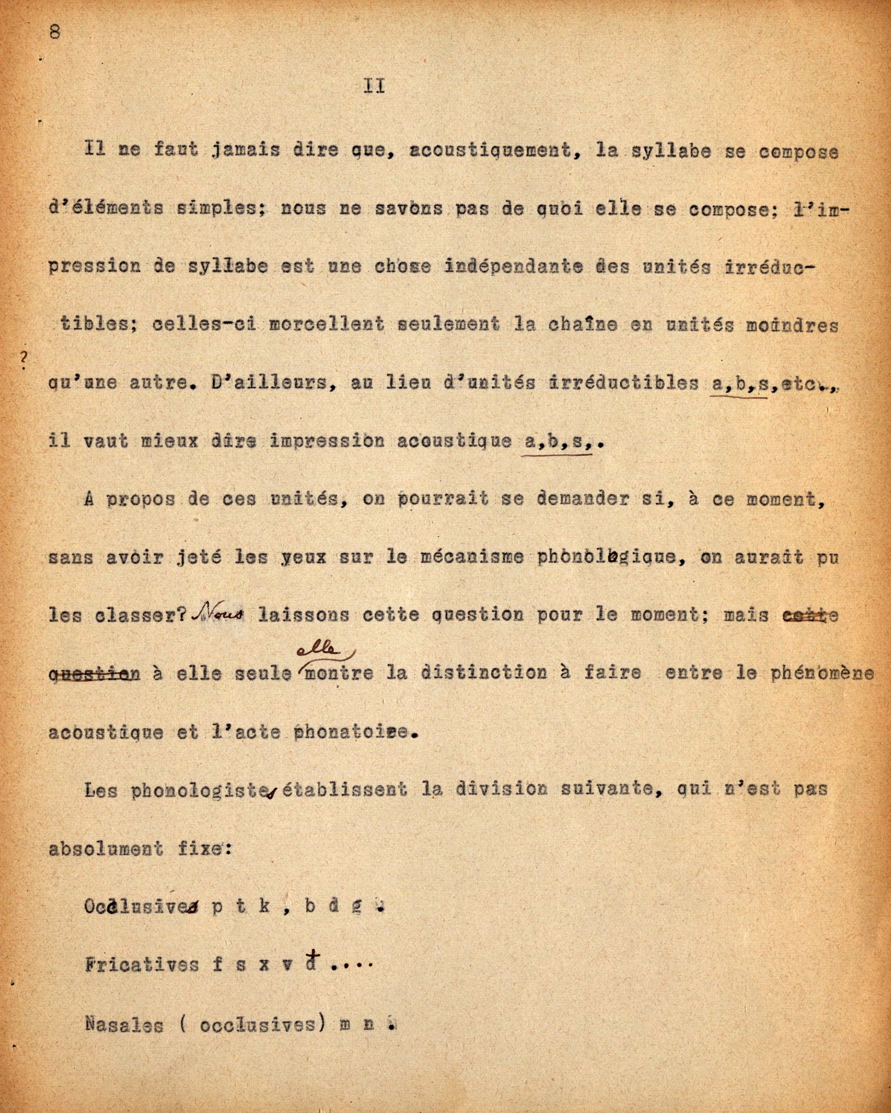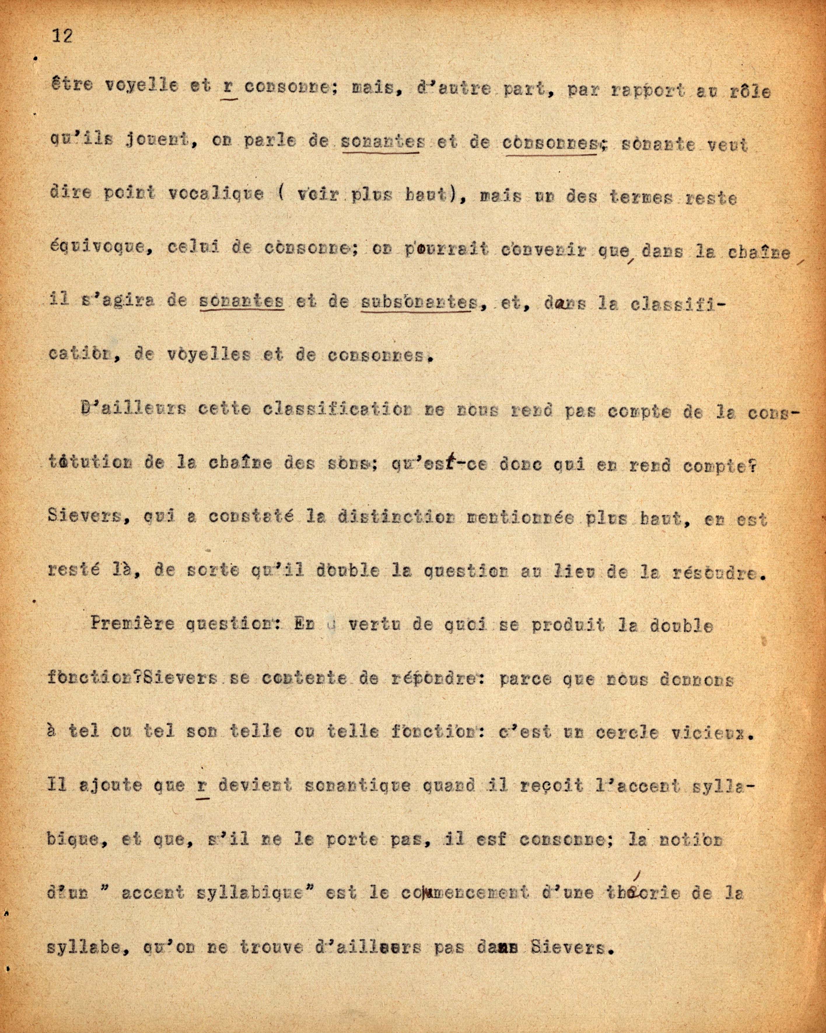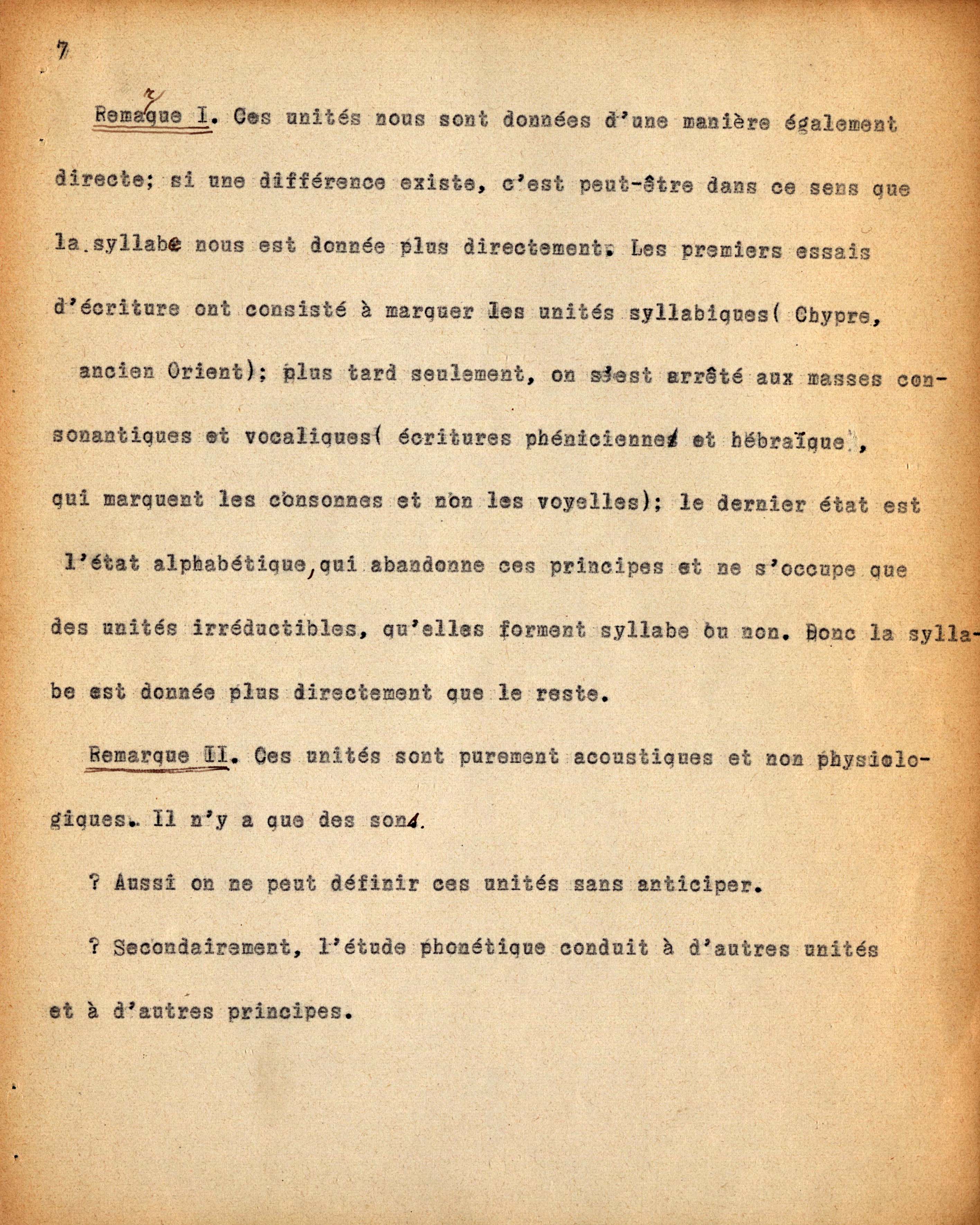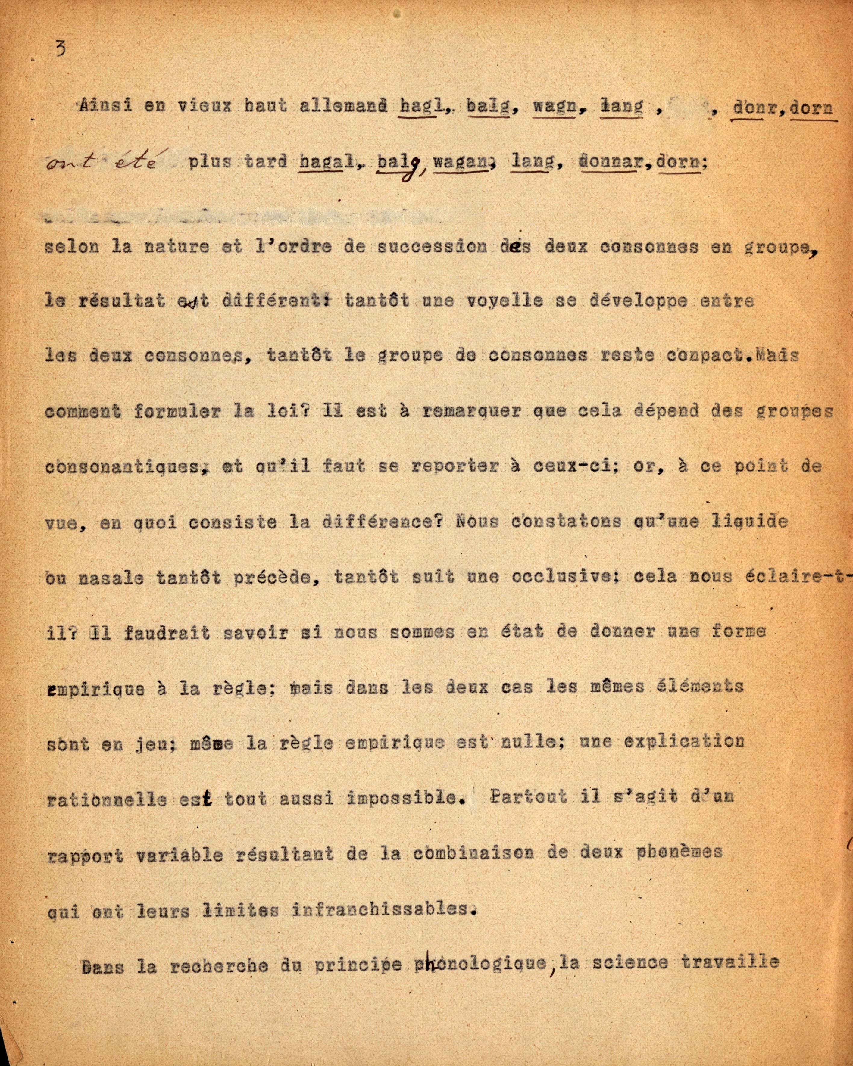 Dattiloscritto di Ch. Bally dei seminari tenuti da F. de Saussure