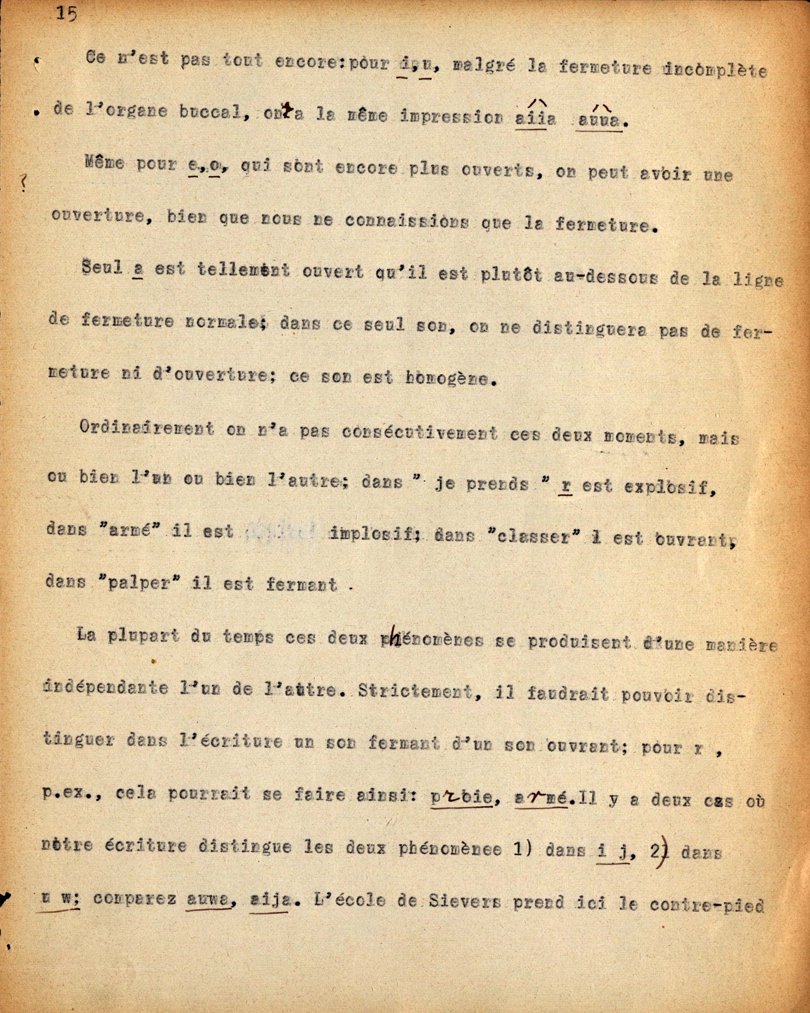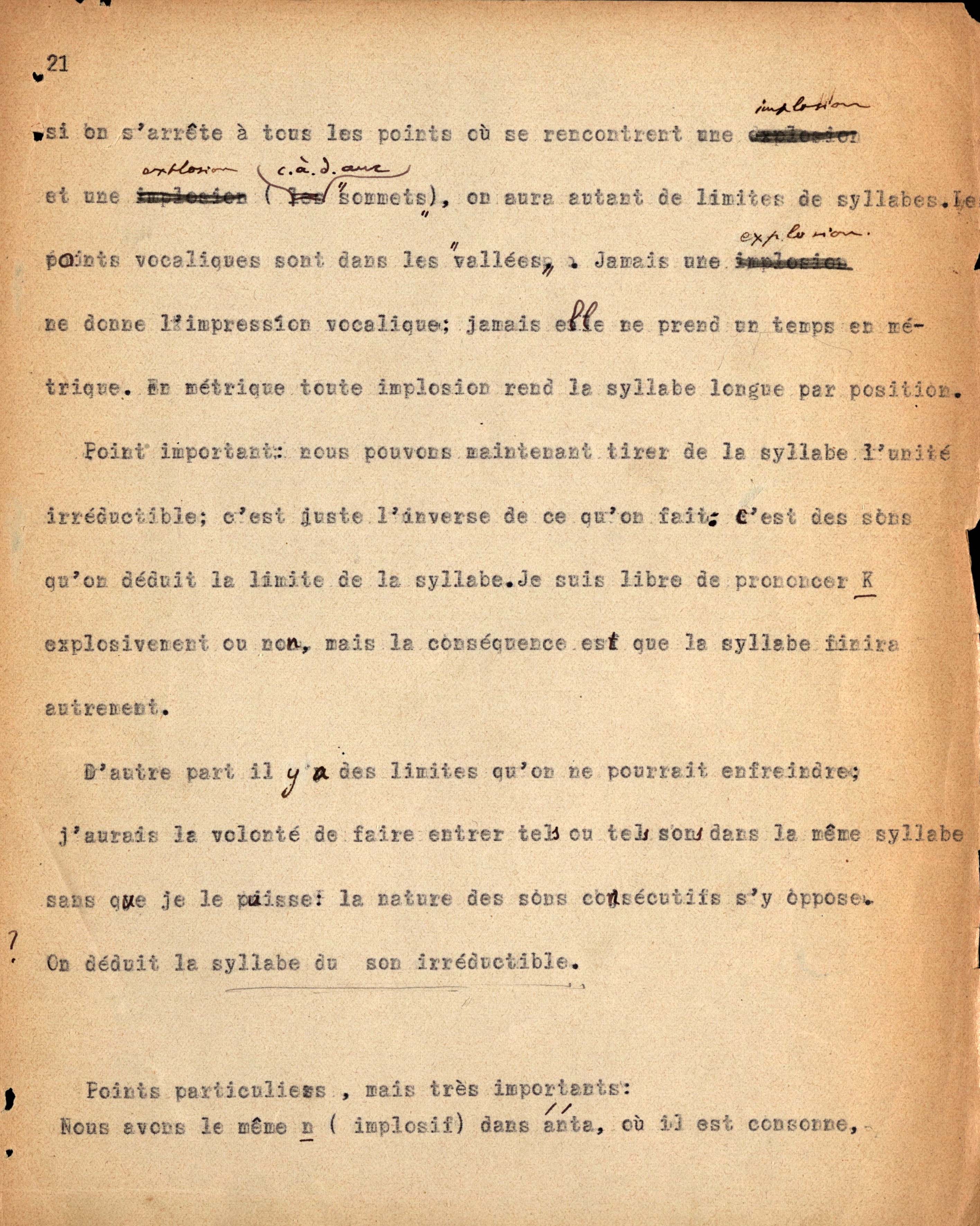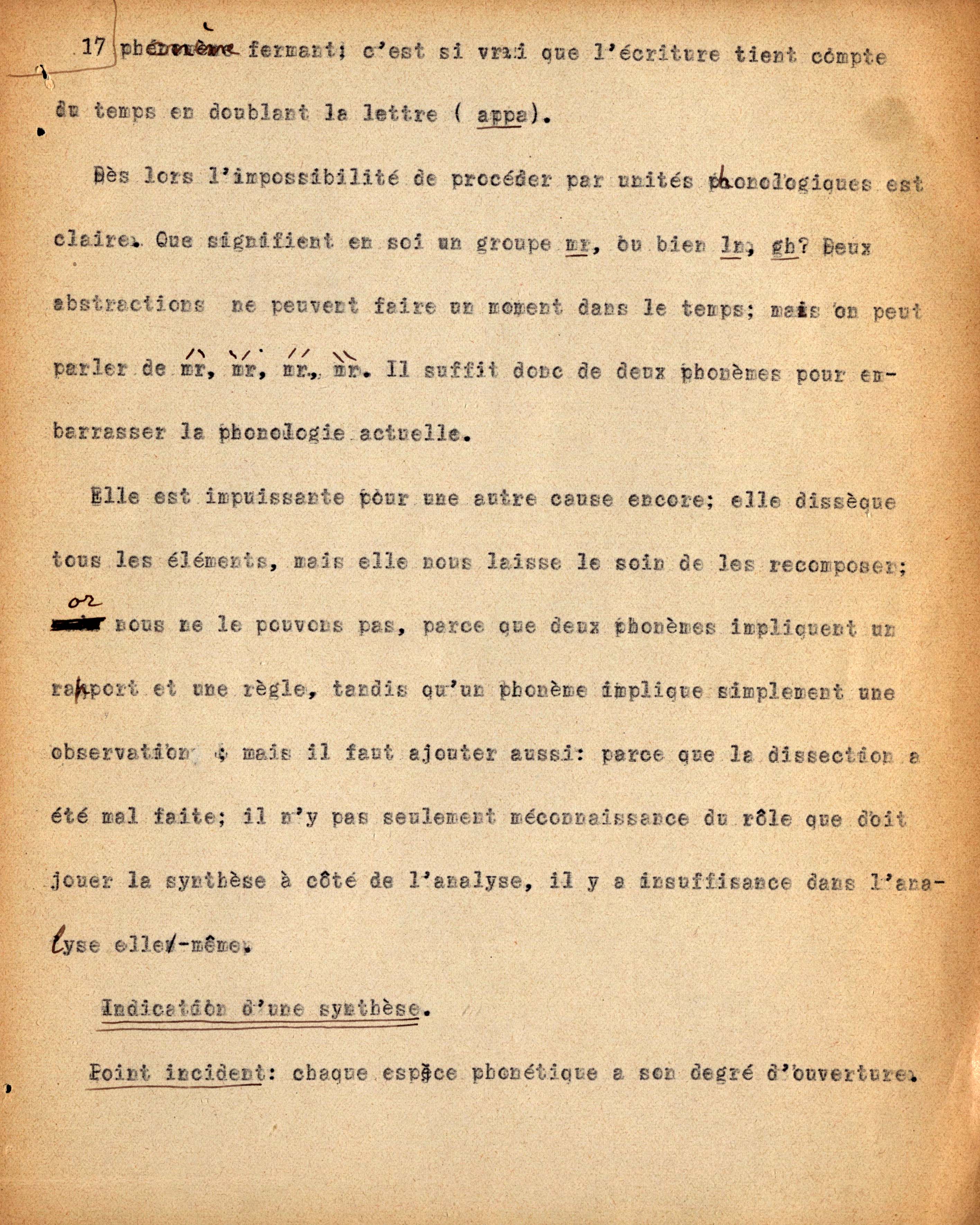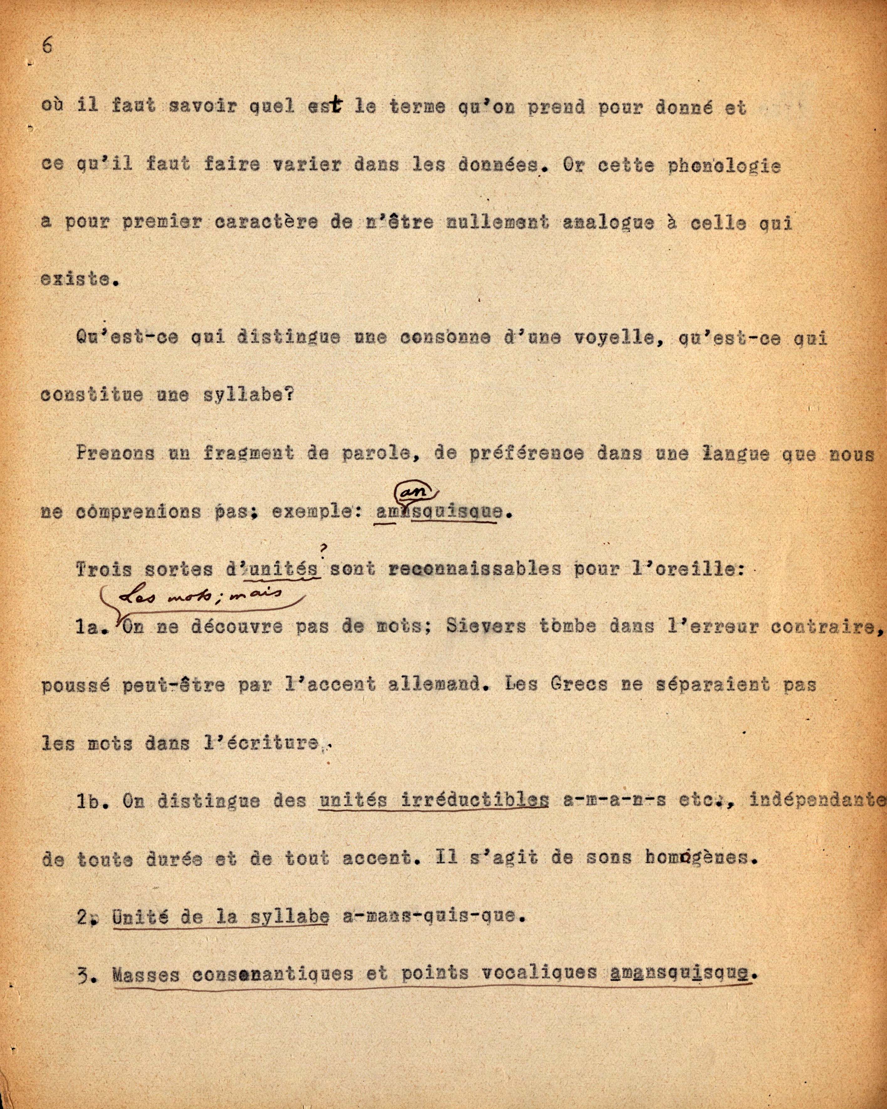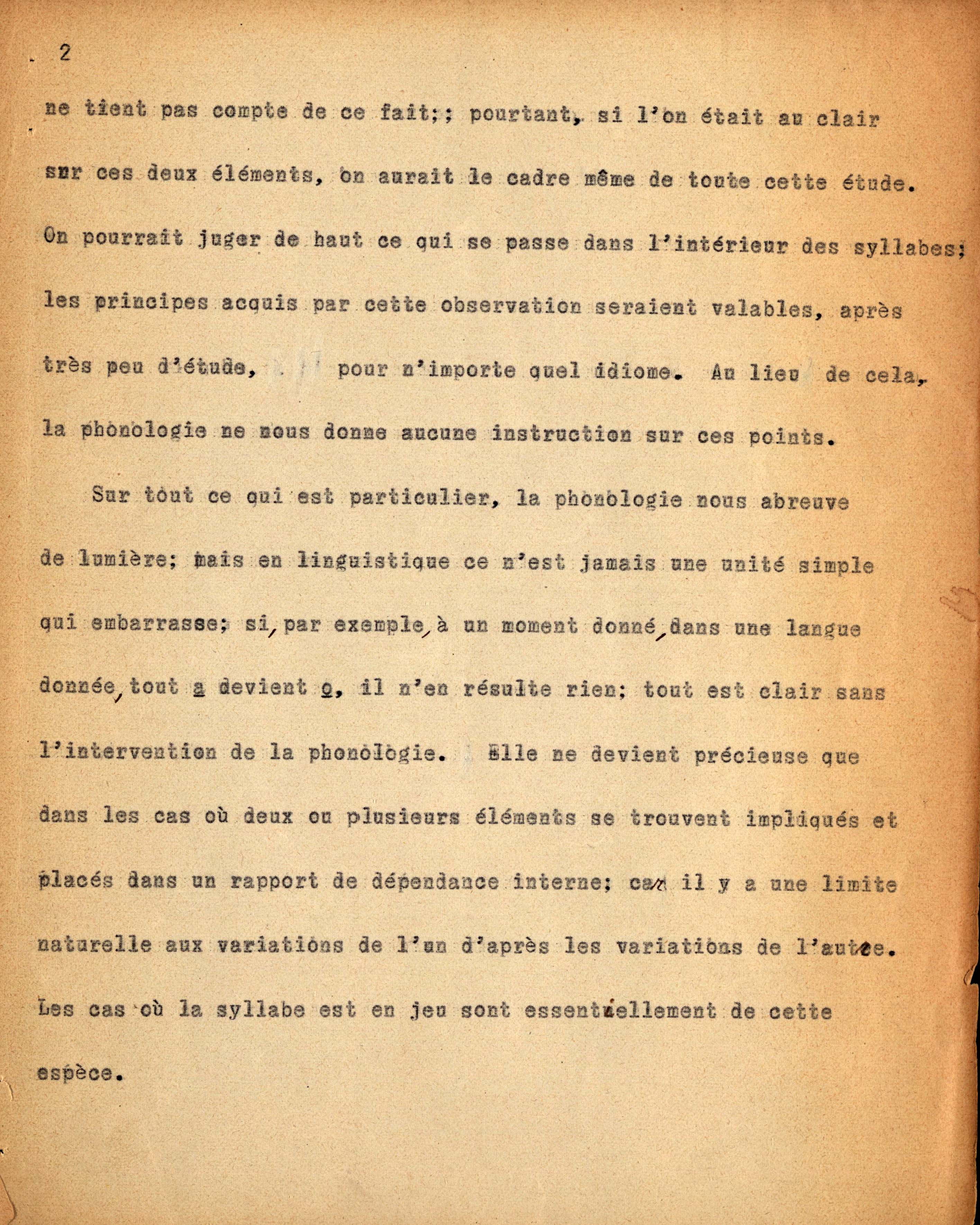 Dattiloscritto di Ch. Bally dei seminari tenuti da F. de Saussure