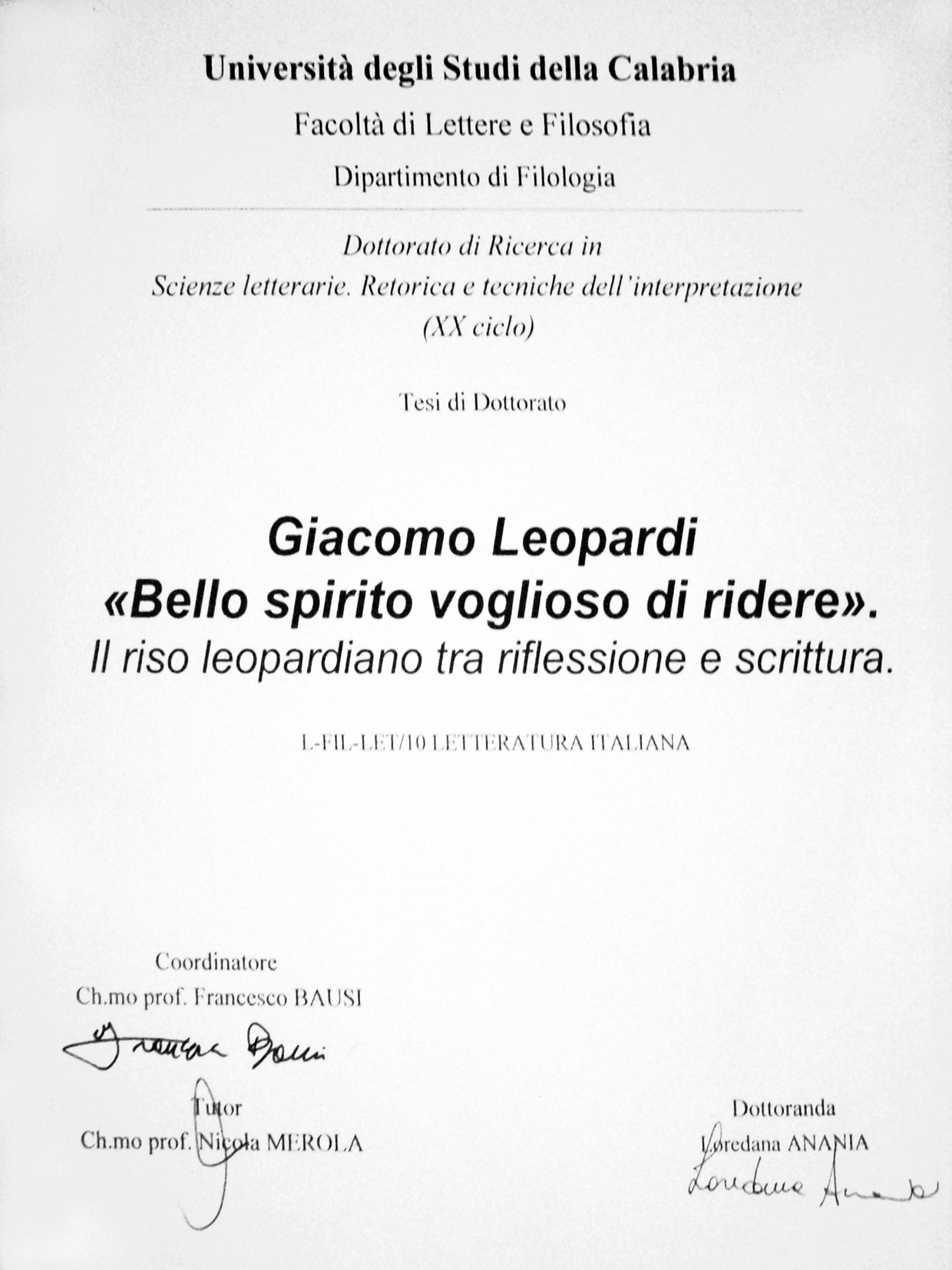 Dottorato di ricerca in Scienze letterarie, retorica e tecniche dell'interpretazione, XX ciclo, A.a. 2007-2008