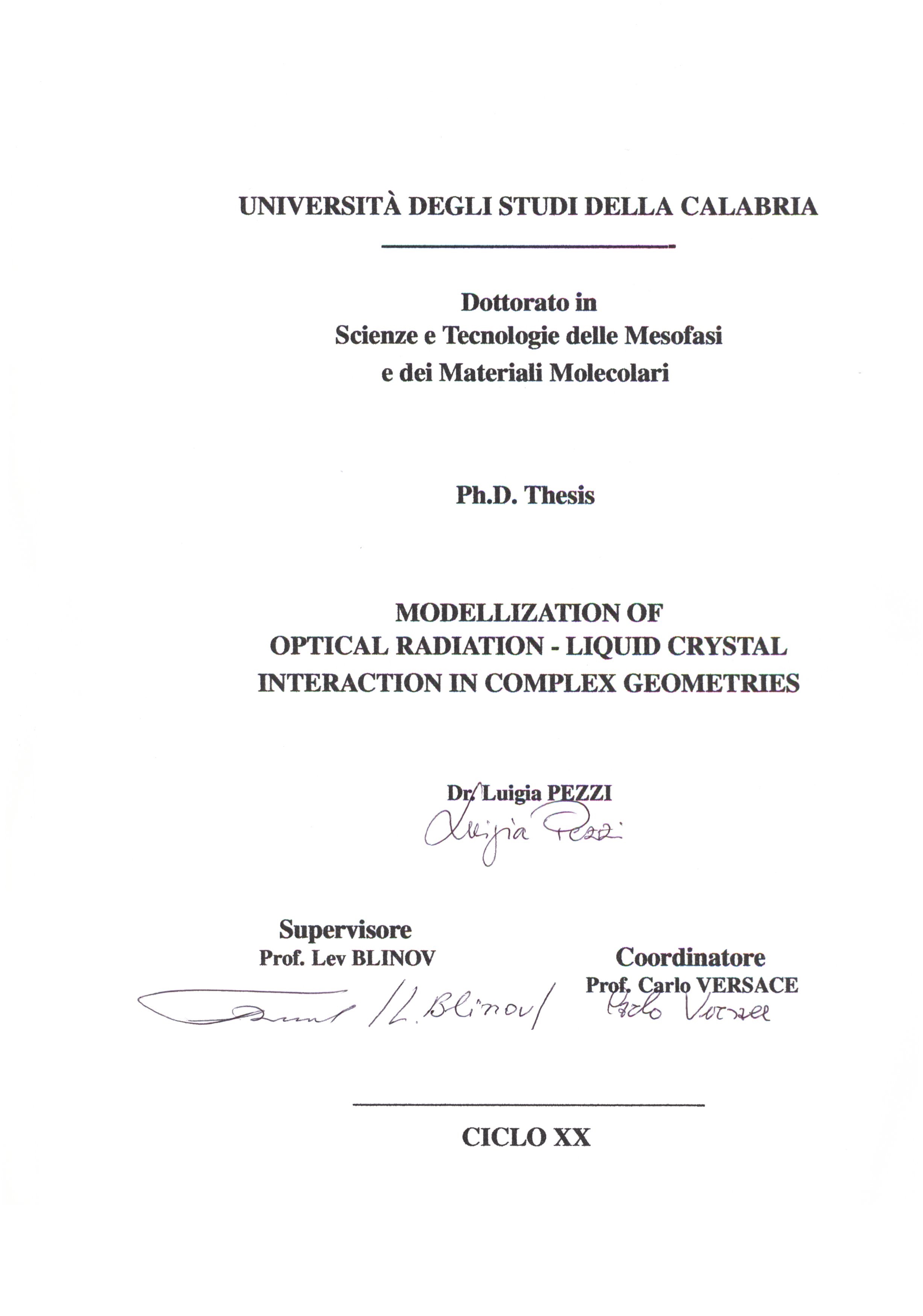 Dipartimenti di Chimica e Fisica, Dottorato di Ricerca in “Scienze e Tecnologie delle Mesofasi e dei Materiali Molecolari, XX Ciclo a.a. 2007