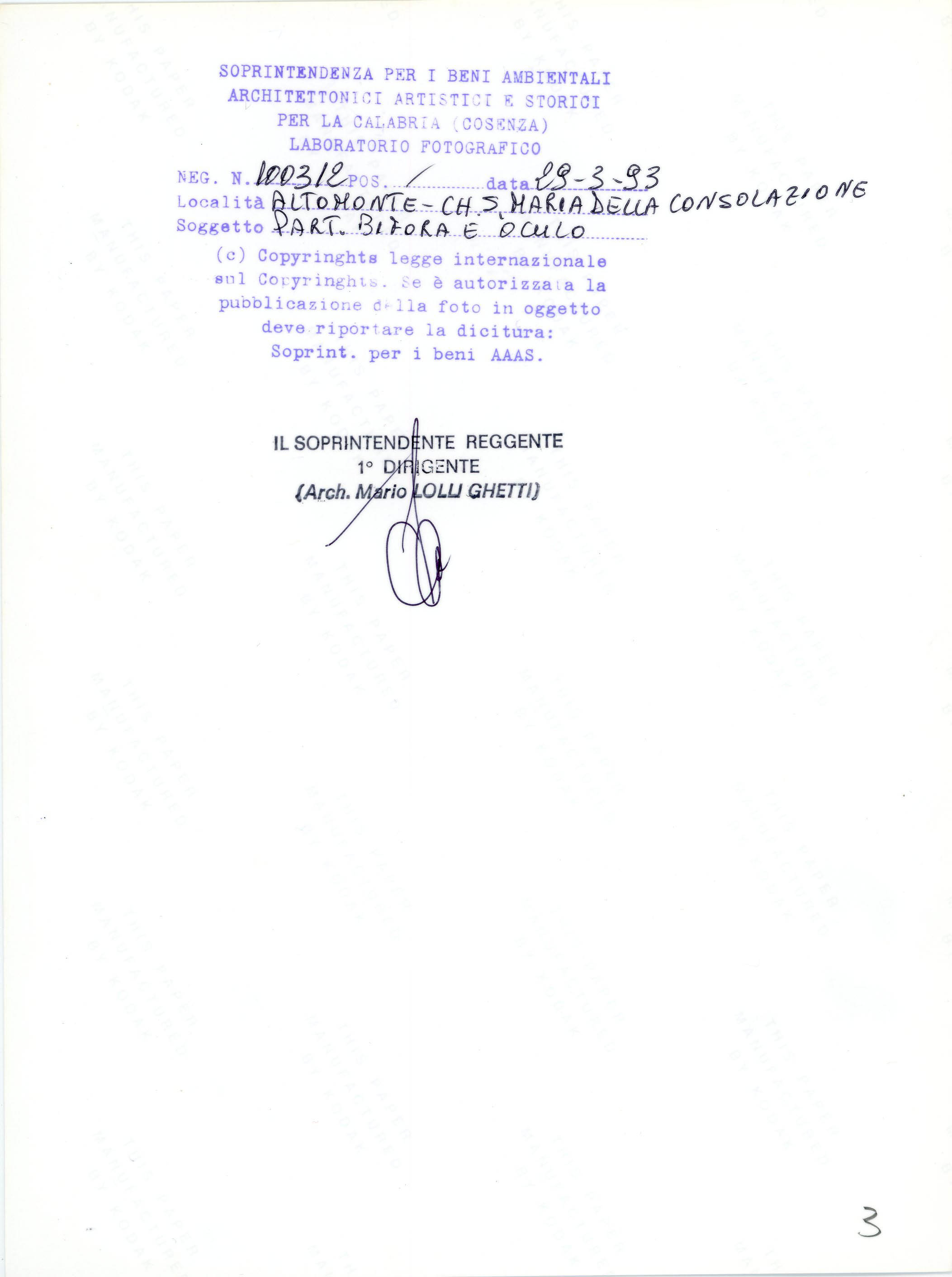 Trifora della Chiesa di Santa Maria della Consolazione in Altomonte