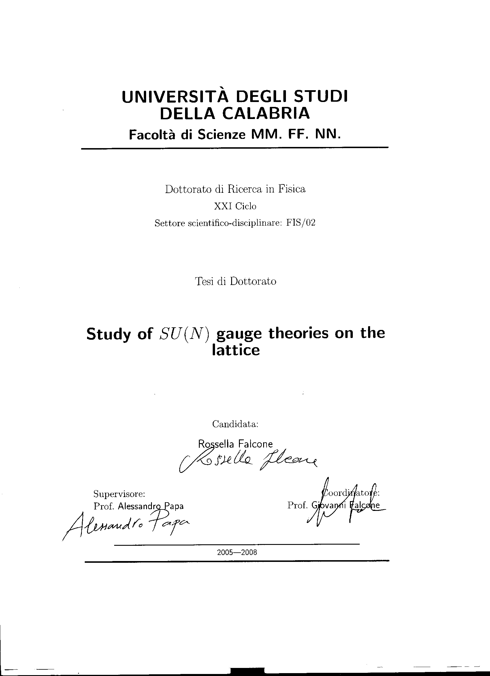 Dottorato di Ricerca in Fisica, Ciclo XXI SSD a.a.2005-2006