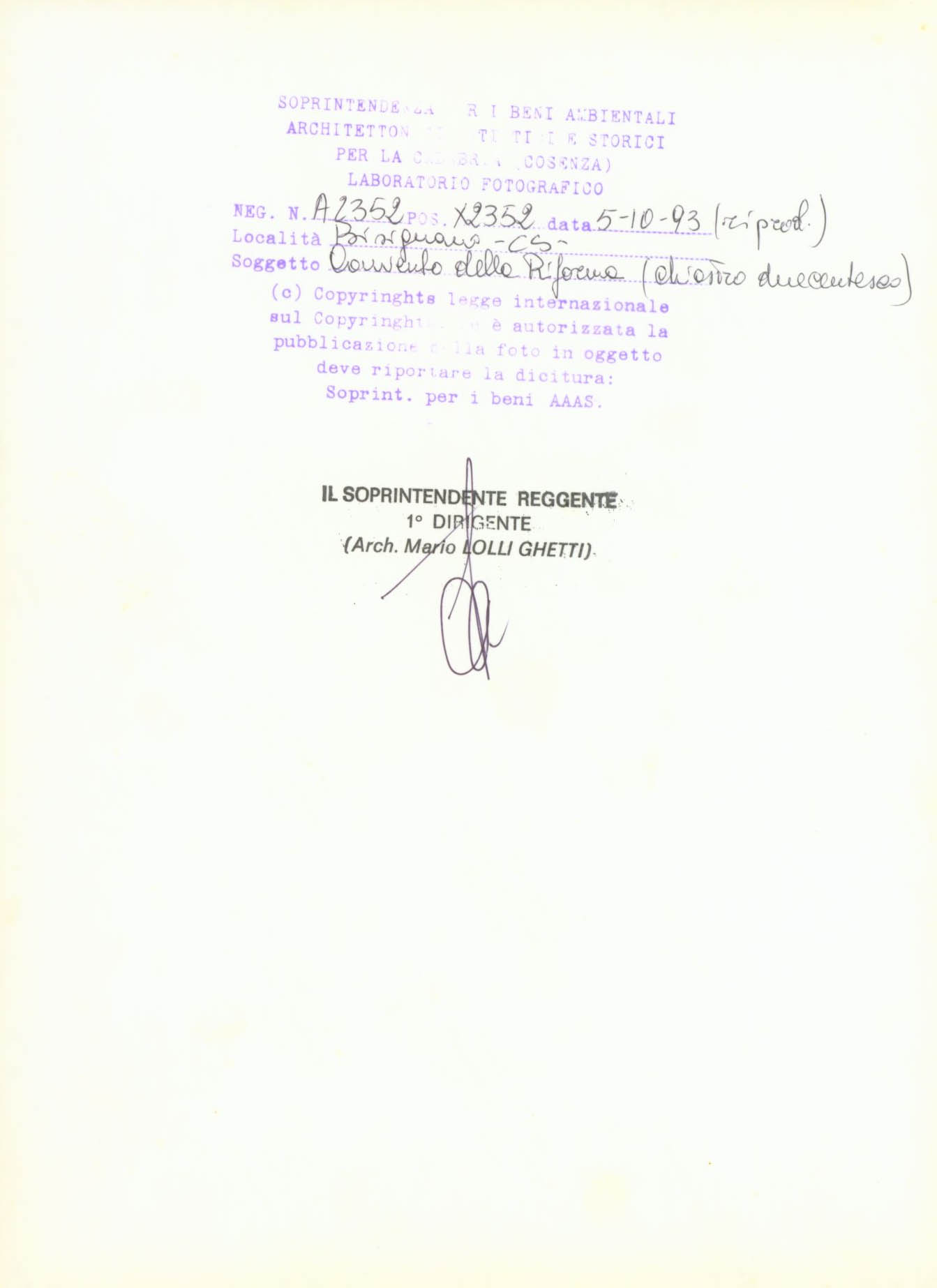 Veduta del chiostro del Convento della Riforma in Bisignano